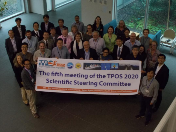 图1:2018年底,在日本横滨市召开的TPOS科学工作组会议专家合影,前排右一和右二分别为足球论坛 宋翔洲教授和中山大学于卫东教授,右四为论文合作者预报中心陈陟副主任,左五为陈大可院士。